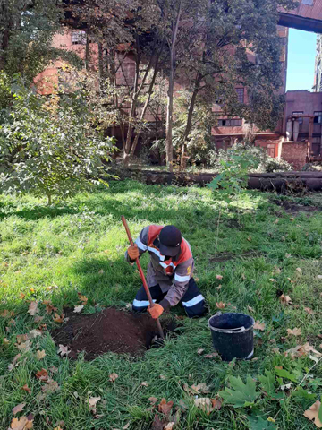 На Криворізькому залізорудному комбінаті постійно дбають про довкілля, проводячи екологічні заходи – прибирання територій, полив доріг та промислових майданчиків, озеленення тощо. Так, за сприяння директора Максима Гриненка на шахті «Козацька» працівники господарської дільниці разом з робітниками інших дільниць щоденно слідкують за чистотою території шахти, прибирають сухе листя, гілки та сміття. На днях поблизу медпункту шахти вони висадили 15 саджанців кленів. Також підготовляють клумби до зимового періоду – здійснюють обкопування та утеплення квітів чорноземом. Незабаром робітники дільниці планують зайнятися обрізанням дерев. Так тримати!